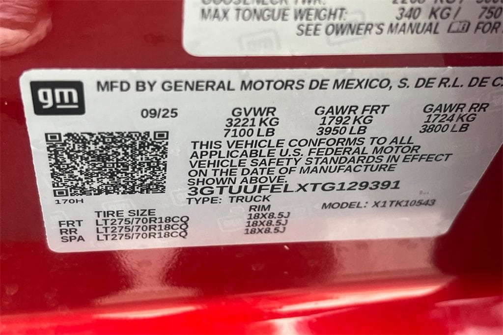 • VIN #3GTUUFELXTG129391