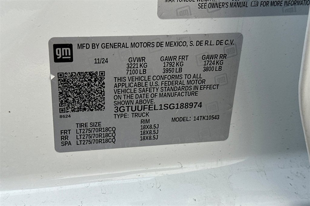 • VIN #3GTUUFEL1SG188974