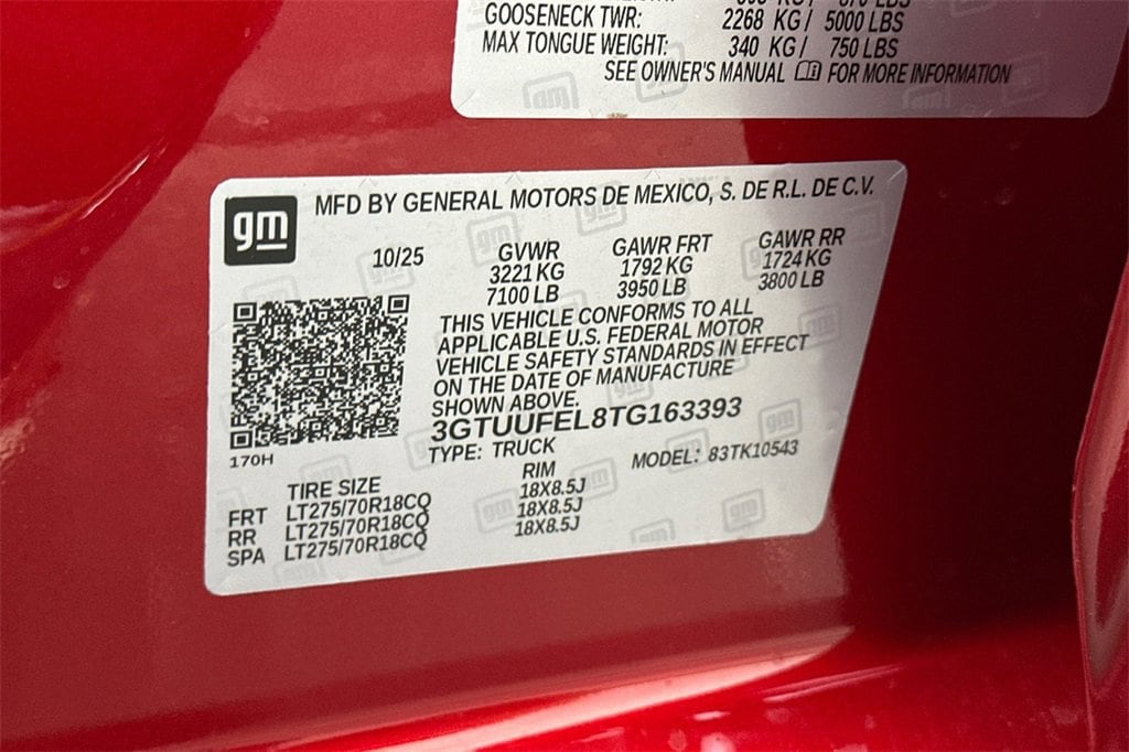 • VIN #3GTUUFEL8TG163393